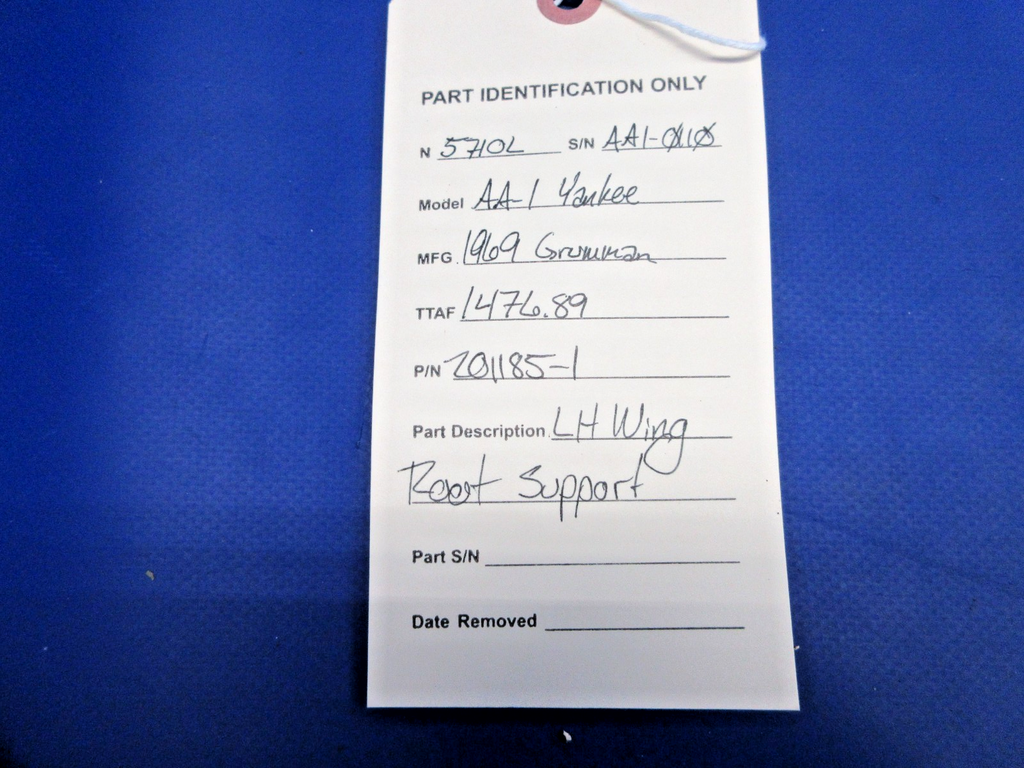 Grumman AA-1 Left Hand Wing Root Support. P/N 201185-1. Removed in good condition from a parted out 1969 Grumman AA-1 N5710L, S/N AA1-0110. TTAF 1,476.89. Guaranteed to pass inspection or your money back.