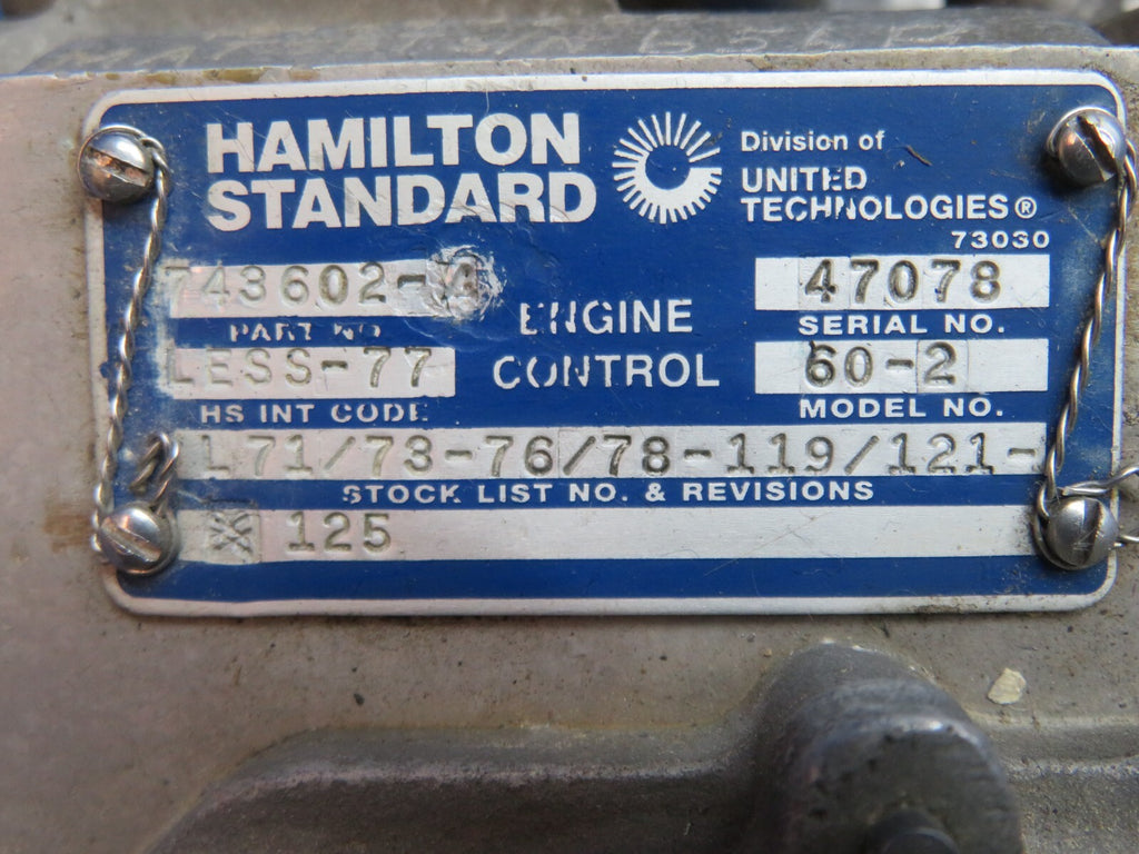 Hamilton Standard Fuel Control Unit P/N 7436024 (0525104)