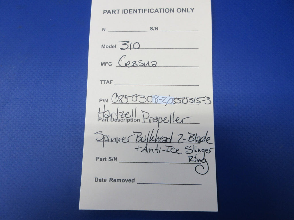 Cessna 310 Hartzell Propeller Spinner Bulkhead 2-Blade and Anti-Ice Slinger Ring. P/N 0850308-2, 0850315-3. Guaranteed to pass inspection or your money back.