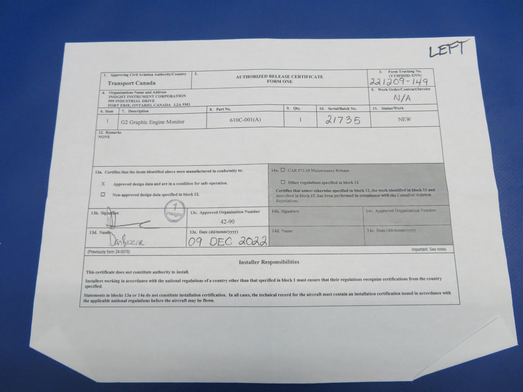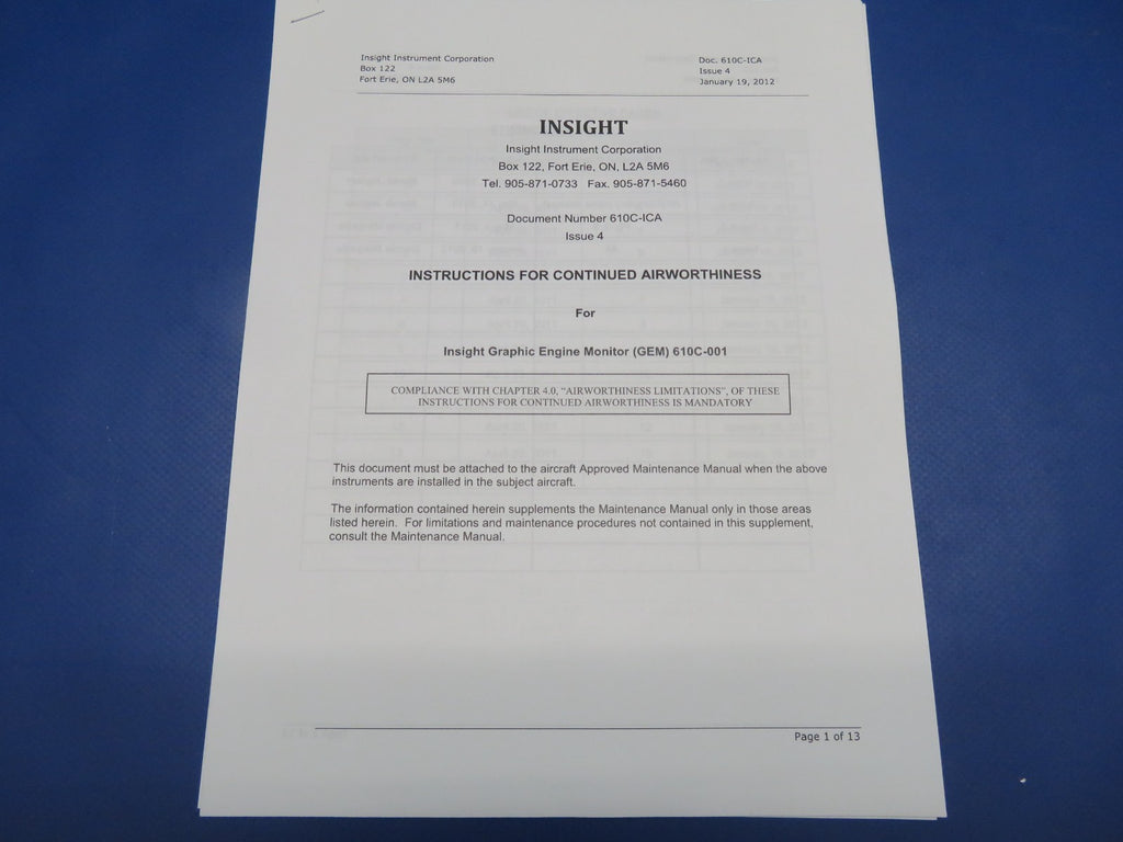 Insight G2 Graphic Engine Monitor 10-30V P/N 610C-001(A) WARRANTY (1125-1765)