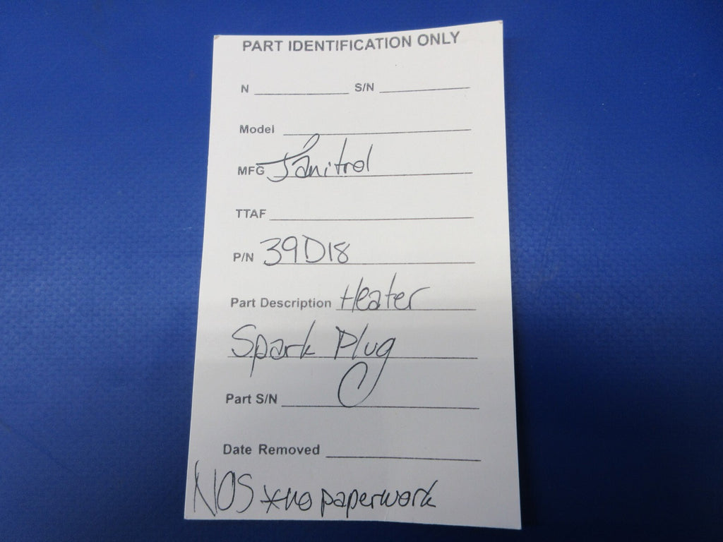 Janitrol Heater Spark Plug. P/N 39D18. NEW OLD STOCK. No paperwork. Guaranteed to pass inspection or your money back.