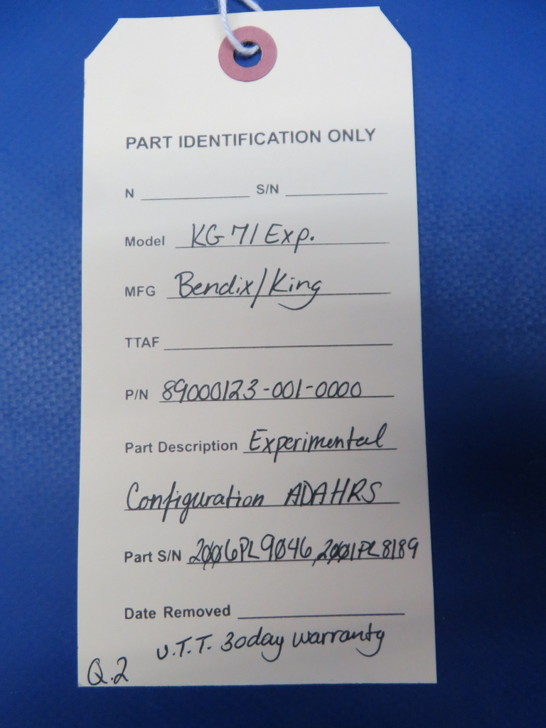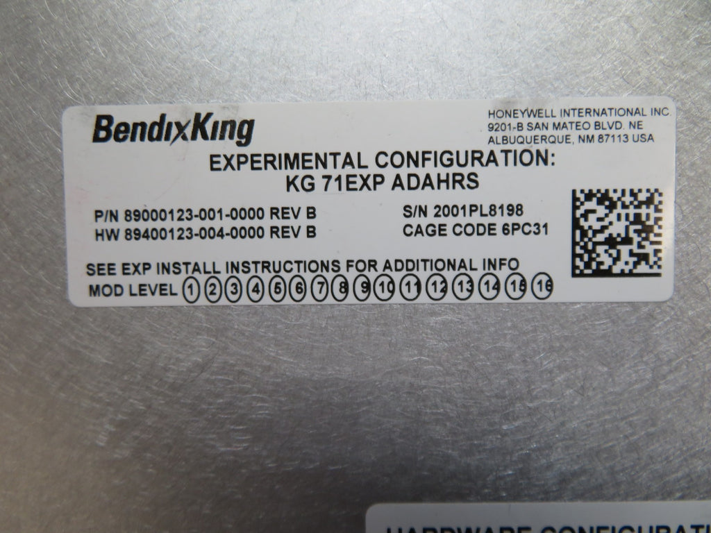 King KG 71EXP Experimental Conf. ADAHRS 89000123-001-0000 WARRANTY (1125-164)