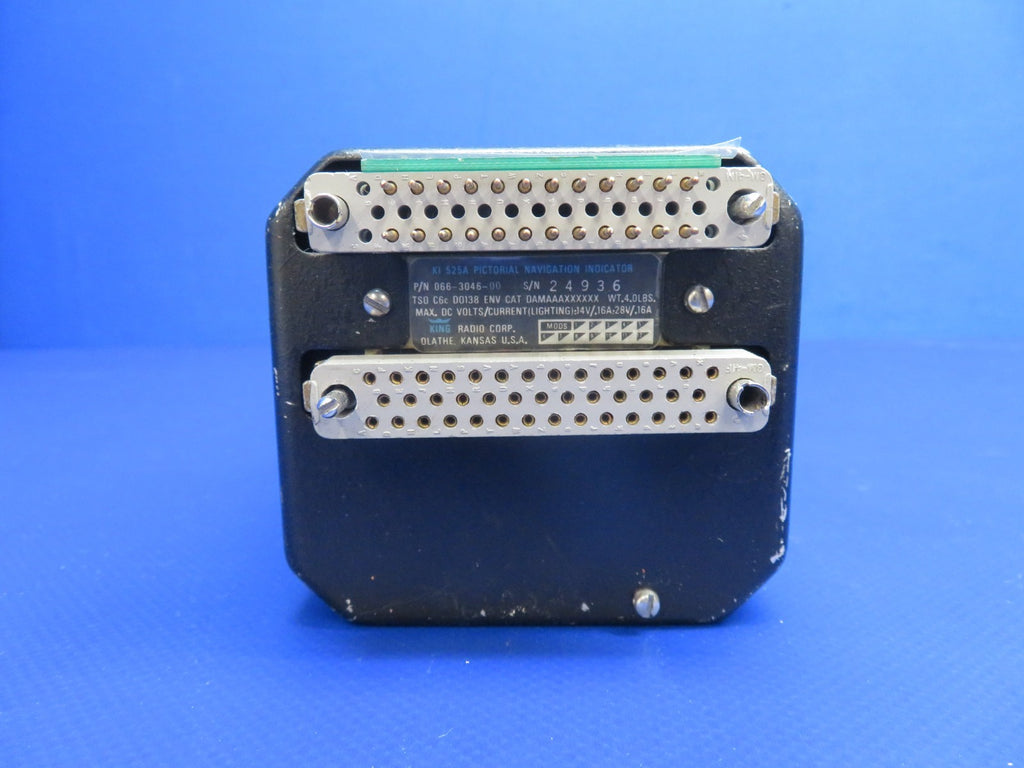 King KI525A Pictorial Navigation Indicator with Connectors. 14/28 Volts. P/N 066-3046-00. S/N 24936. We are unable to test this unit, however, we are selling this unit with a 30 day warranty. Removed in good condition from a parted out 1965 Cessna 310J N3195L, S/N 310J0195. TTAF 4,435.9. Guaranteed to pass inspection or your money back.