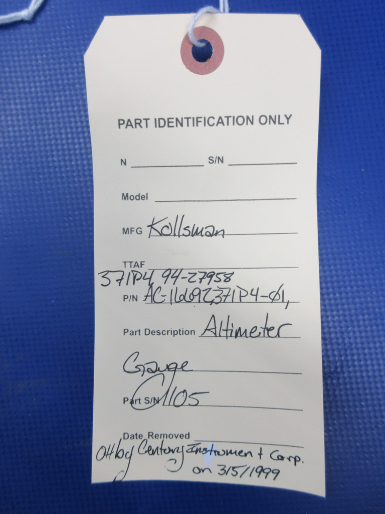 Kollsman Altimeter Gauge P/N AC-16692, 371P4-01, 94-279J8 OVERHAULED (1025-460)
