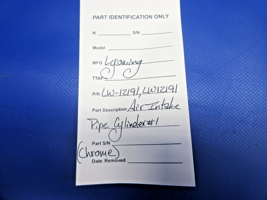 Lycoming Air Intake Pipe Cylinder #1. P/N LW-12191, LW12191. Chrome. Guaranteed to pass inspection or your money back.