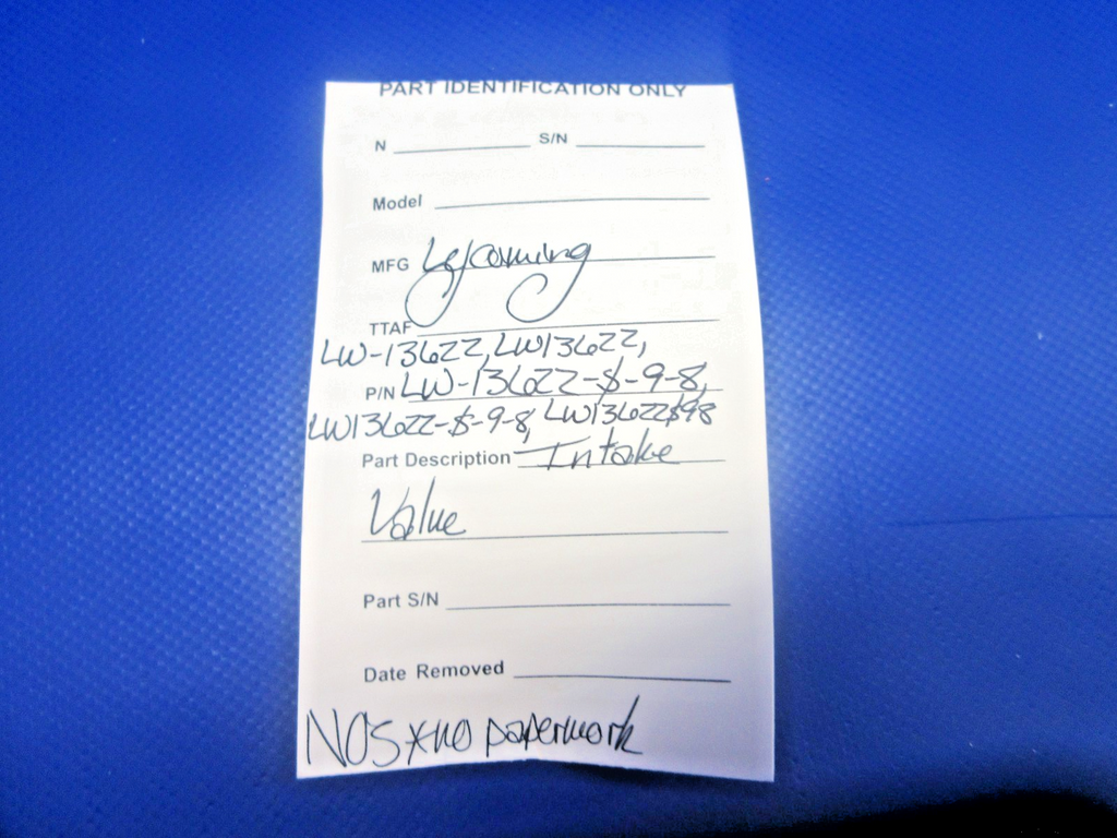 Lycoming Intake Valve. P/N LW-13622-S-9-8, LW13622-S-9-8, LW13622S98, LW-13622, LW13622. NEW OLD STOCK. No Paperwork. Guaranteed to pass inspection or your money back.
