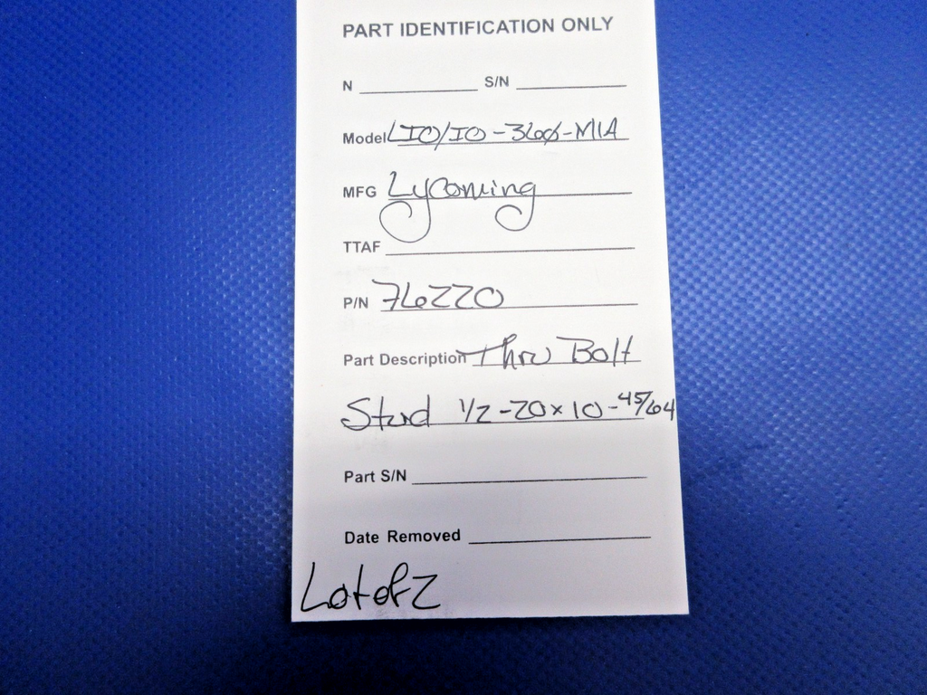 Lycoming LIO / IO-360-MIA Thru Bolt Stud 1/2-20x10-45/64. P/N 76220. LOT OF 2. Guaranteed to pass inspection or your money back.