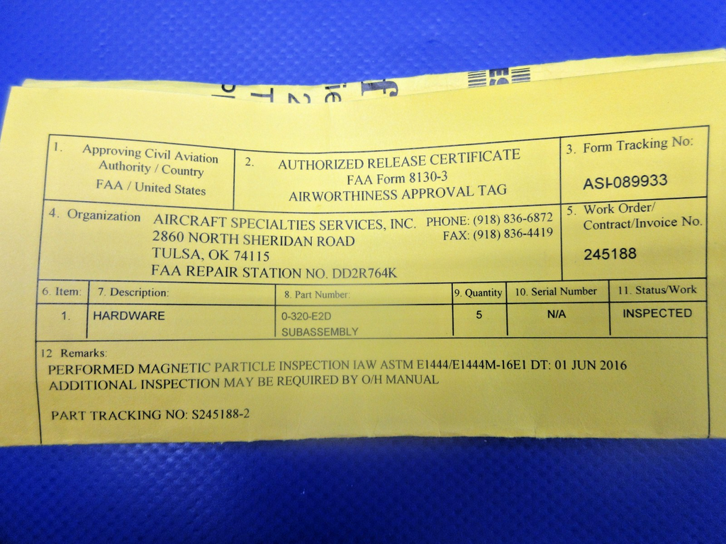 We are a full-service aircraft maintenance shop that sells new aircraft parts from surplus inventory auctions and parts from salvaged airplanes. We try to be as clear as possible in the descriptions of the items we have listed for sale. If you have any questions regarding the suitability or condition of a part, please let us know, and we will have one of our mechanics check it out and give an honest answer as to its condition. Unless otherwise noted, we will ship the majority of our items via UPS. Free shipping is usually USPS. Tracking information will be sent to the Email account on file with PayPal, so please make sure your information is up to date.