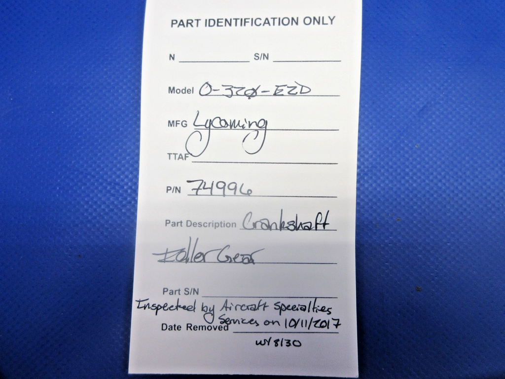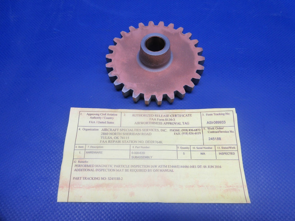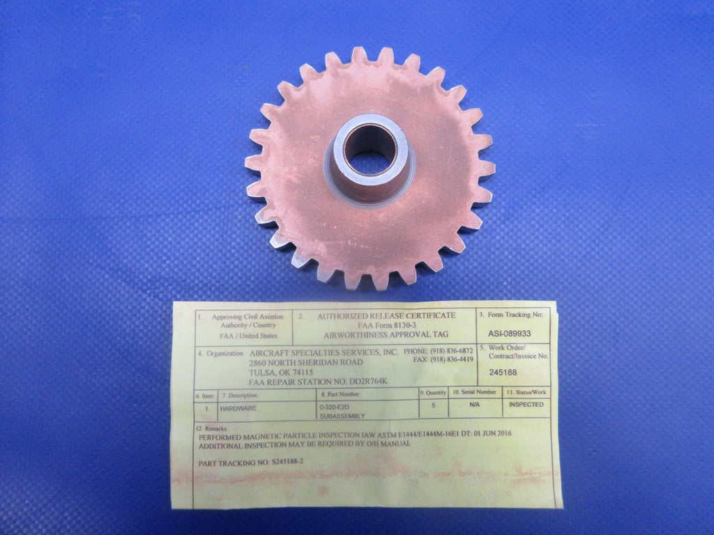 Lycoming O-320-E2D Crankshaft Idler Gear With 8130. P/N 74996. Inspected by Aircraft Specialties Service on 10/11/2017. Guaranteed to pass inspection or your money back.
