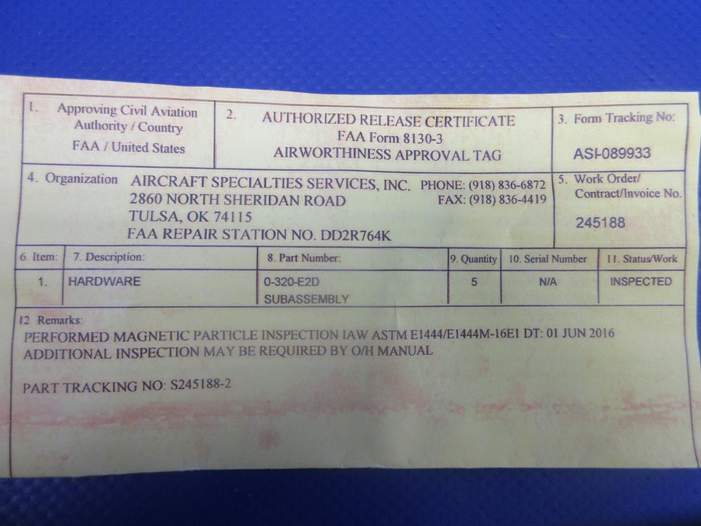 We are a full-service aircraft maintenance shop that sells new aircraft parts from surplus inventory auctions and parts from salvaged airplanes. We try to be as clear as possible in the descriptions of the items we have listed for sale. If you have any questions regarding the suitability or condition of a part, please let us know, and we will have one of our mechanics check it out and give an honest answer as to its condition. Unless otherwise noted, we will ship the majority of our items via UPS. Free shipping is usually USPS. Tracking information will be sent to the Email account on file with PayPal, so please make sure your information is up to date.