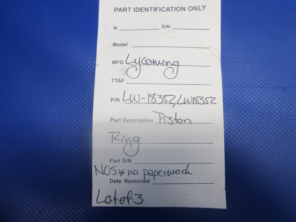 Lycoming Piston Ring. P/N LW-18352, LW18352. LOT OF 3. NEW OLD STOCK. No Paperwork. Guaranteed to pass inspection or your money back.