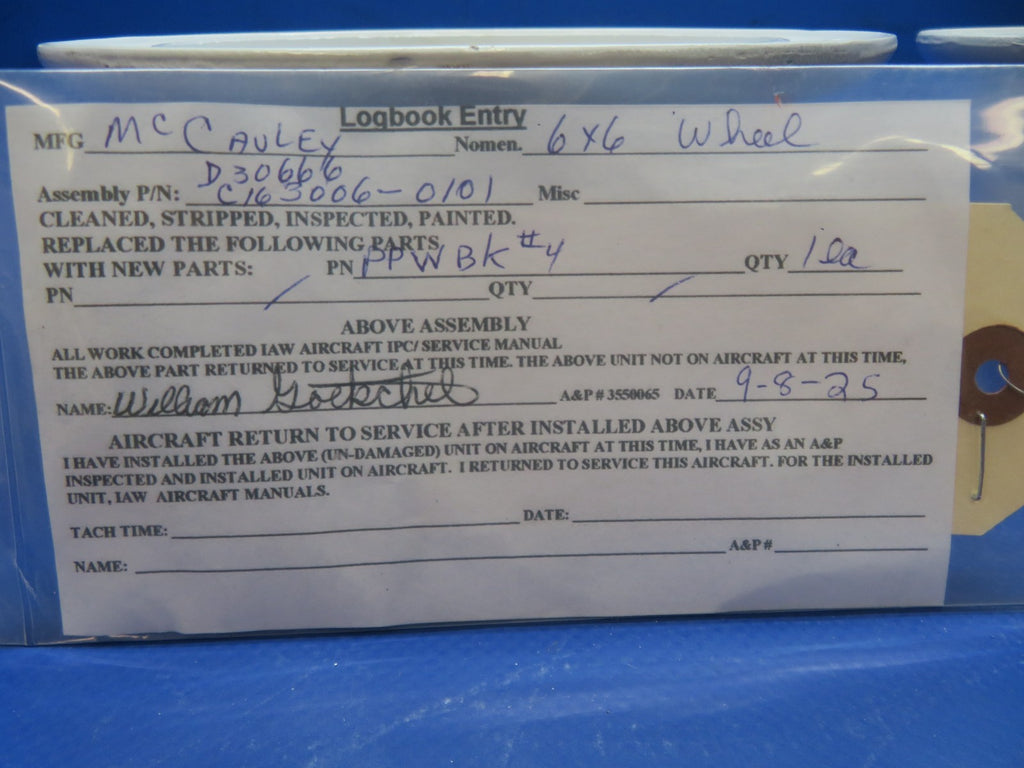 McCauley 6.00x6 Wheel P/N C163006-0101 REBUILT w/ New Bolt Kit (0925-153)