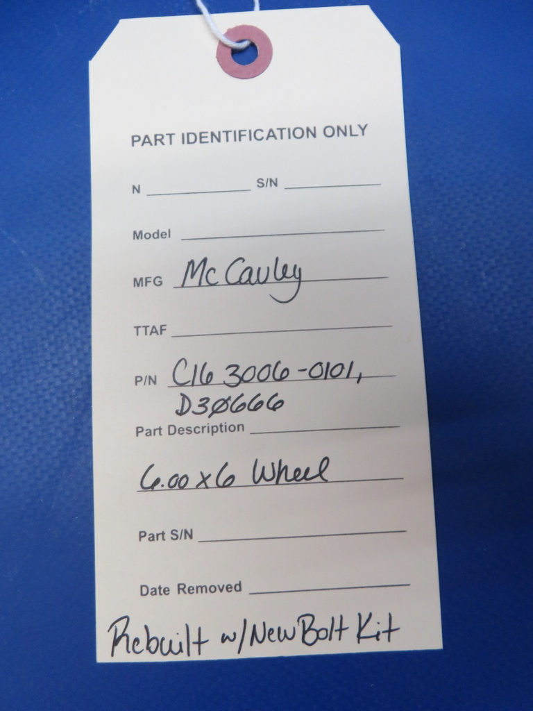 McCauley 6.00x6 Wheel. P/N C163006-0101, D30666. REBUILT with New Bolt Kit. Guaranteed to pass inspection or your money back.