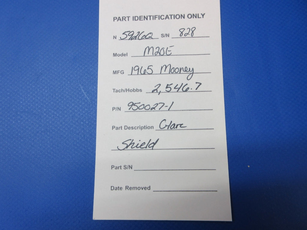 Mooney M20E Glare Shield. P/N 950027-1. Removed in good condition from a parted out 1965 Mooney M20E N5926Q, S/N 828. TTAF 2,546.7. Guaranteed to pass inspection or your money back.