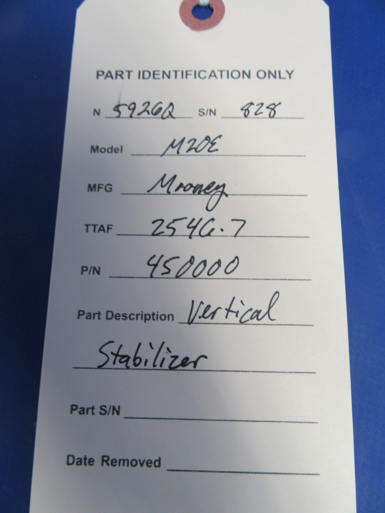 Mooney M20 / M20E Vertical Stabilizer P/N 450000 (062502)