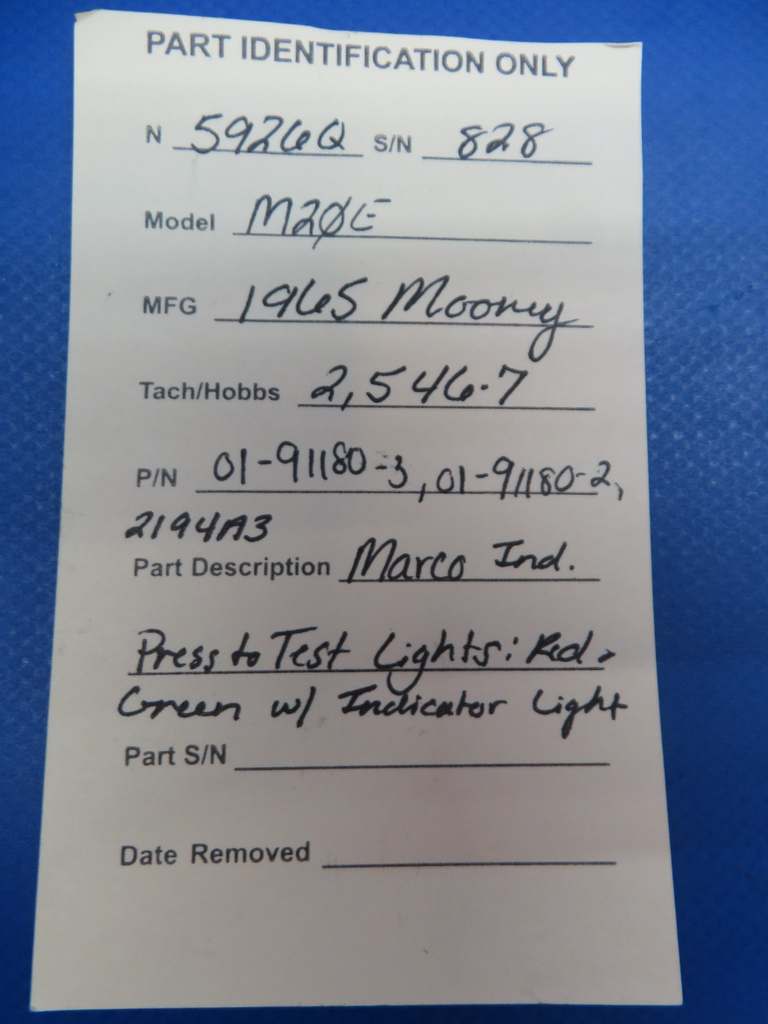 Mooney M20 Marco Ind. Press To Test Lights Red & Green P/N 01911803 (0725108)