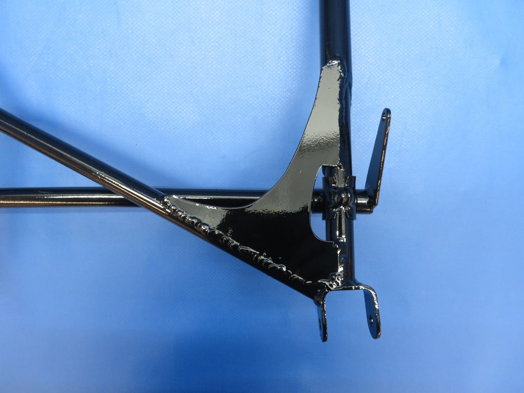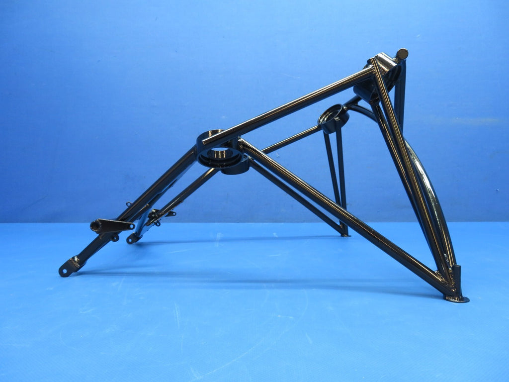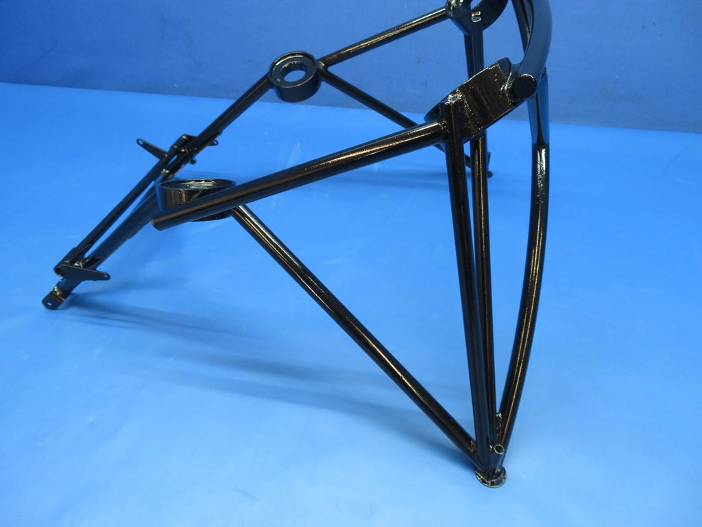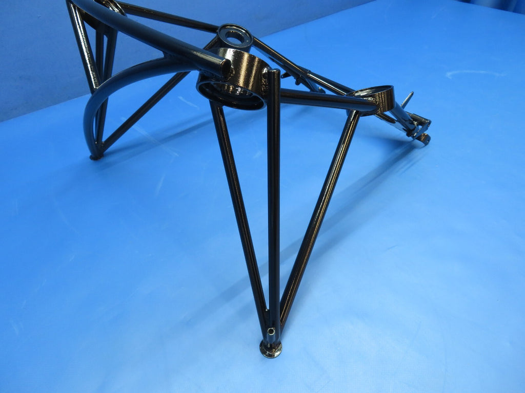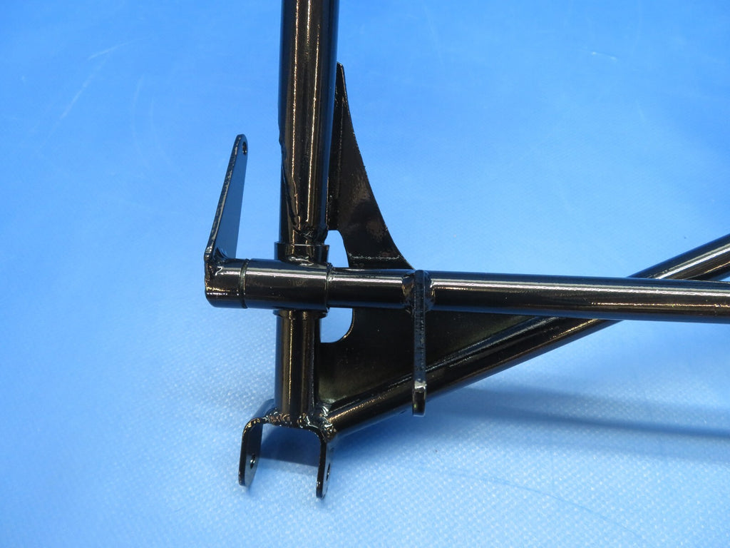 Mooney M20E Lycoming IO-360-A1A Engine Mount. P/N 590000. Mooney SB M20-192A "Gusset Installation" c/w AD 75-09-08, which eliminates 100 hr recurring inspection on this mount. This mount was media blasted, inspected by an A&P mechanic, cleaned, epoxy primed, and top coated with jet black urethane paint.