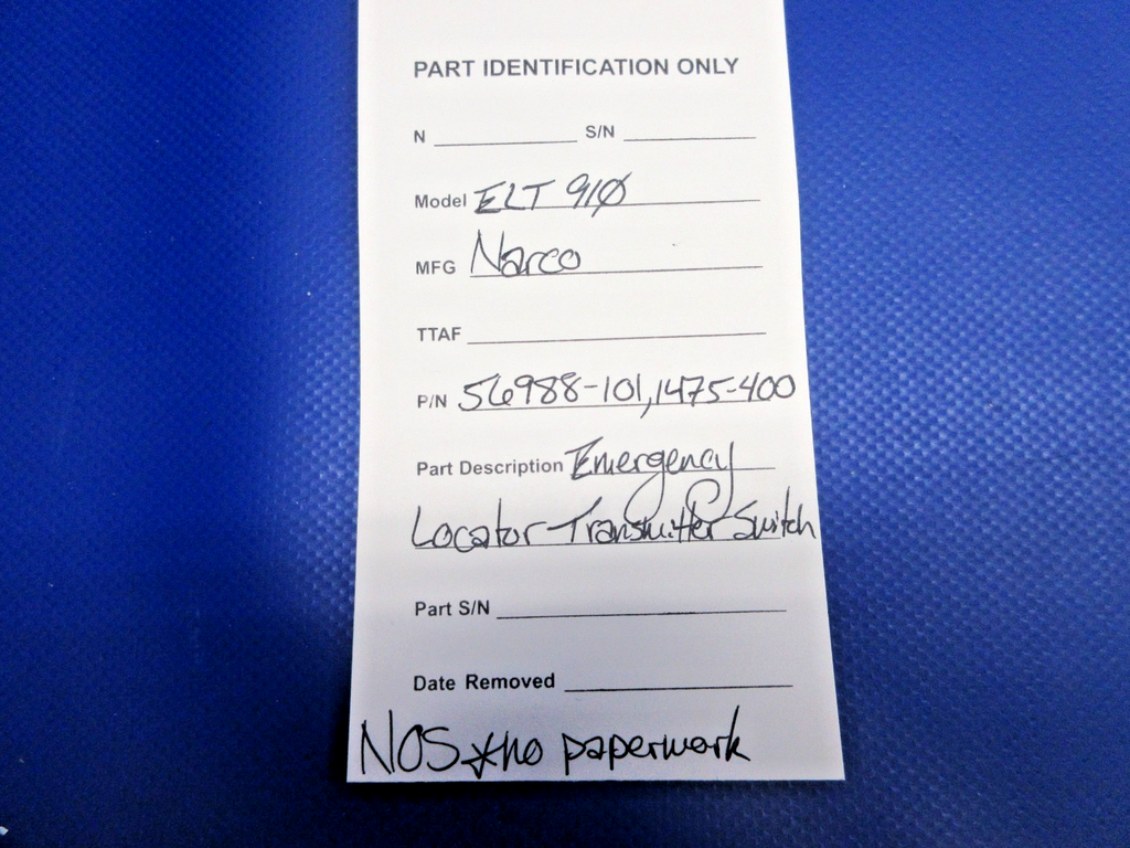 Narco ELT 910 Emergency Locator Transmitter Switch. P/N 56988-101,1475-400. NEW OLD STOCK. No Paperwork. Guaranteed to pass inspection or your money back.
