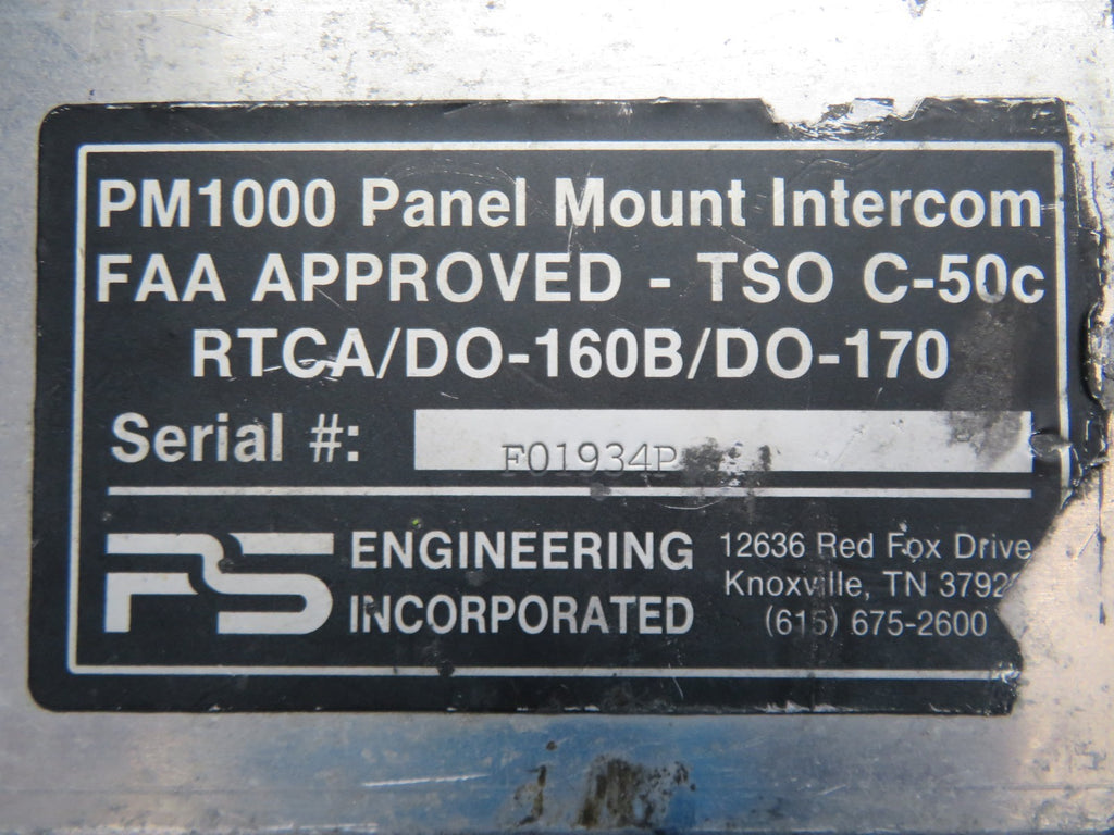 P.S. Engineering Panel Mounted Intercom P/N PM1000 WARRANTY (0825-117)