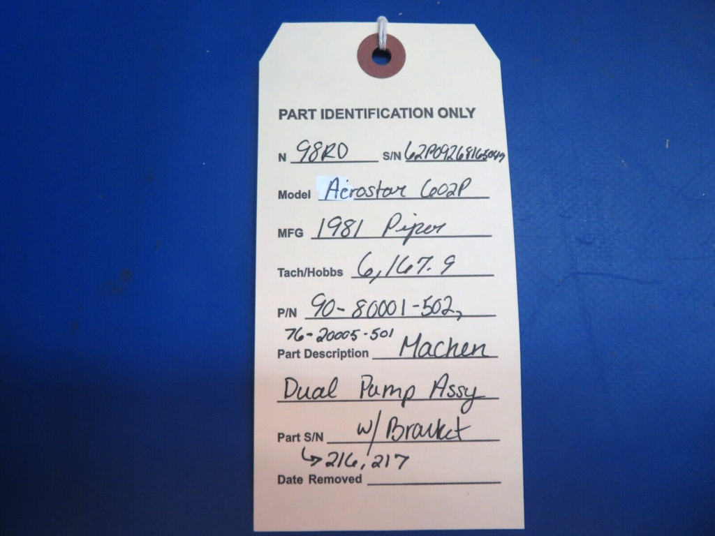 Piper Aerostar 602P Machen Dual Pumps w Bracket P/N 90-80001-502 CORE (0123-863)