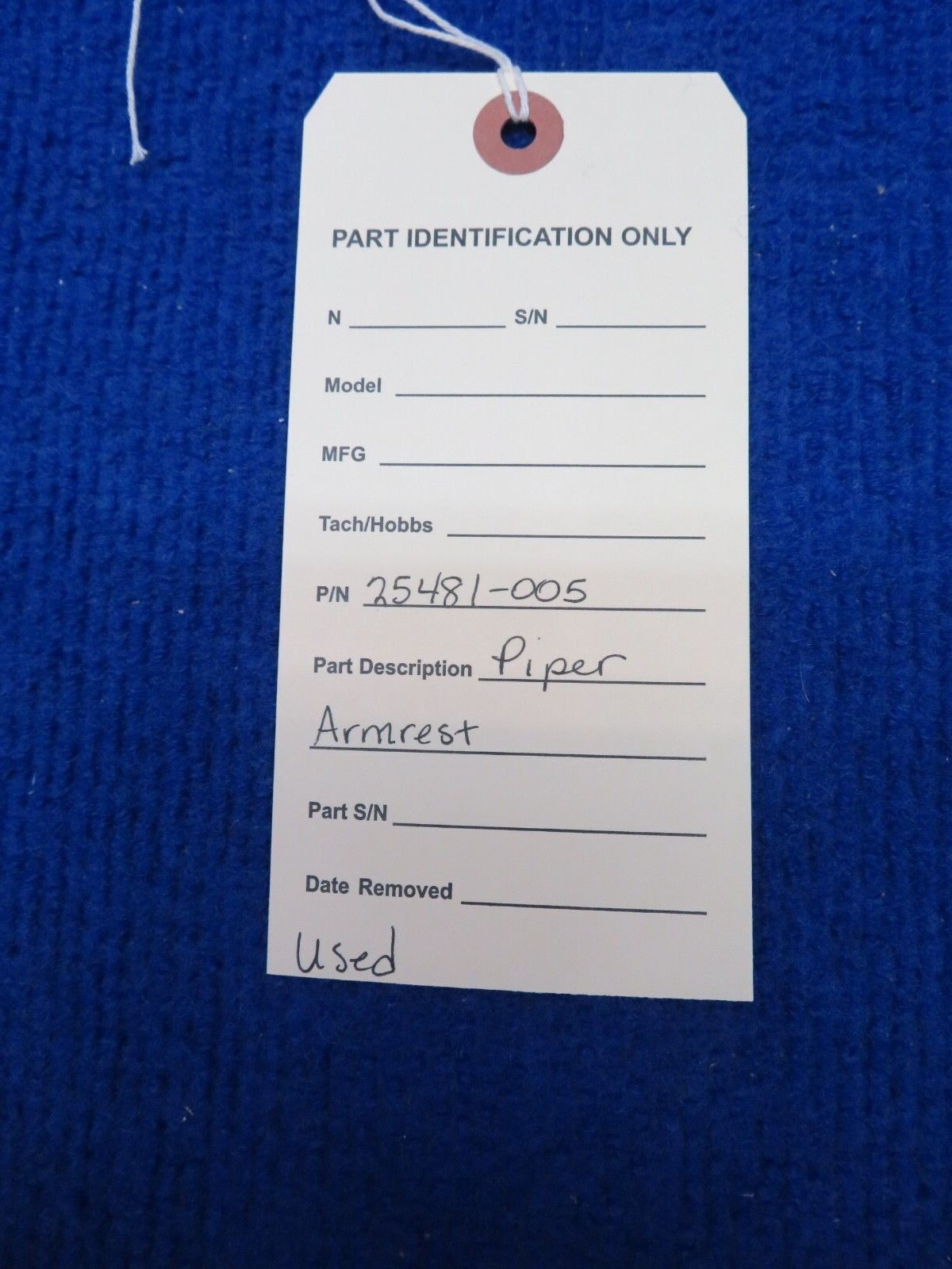 Piper Armrest. P/N 25481-005. Color is Teal. Guaranteed to pass inspection or your money back.