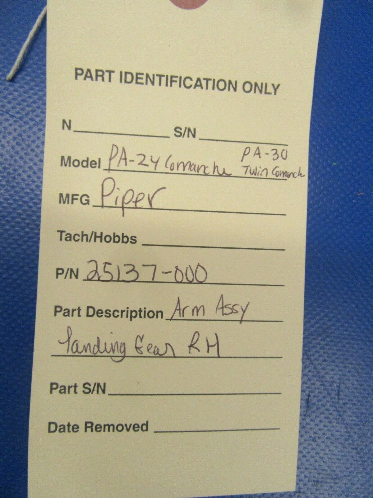 Piper PA-24 Comanche and PA-30 Twin Comanche Arm Assy Landing Gear Retract RH. P/N 25137-000. Alt P/N 21012-002. Guaranteed to pass inspection or your money back.
