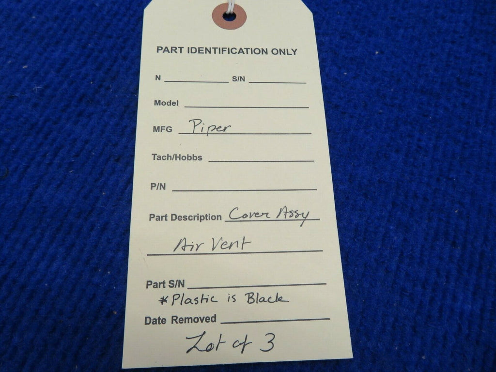 Piper Cover Assembly Air Vent. P/N 65735-19. LOT OF 3. Plastic is Black. Guaranteed to pass inspection or your money back.