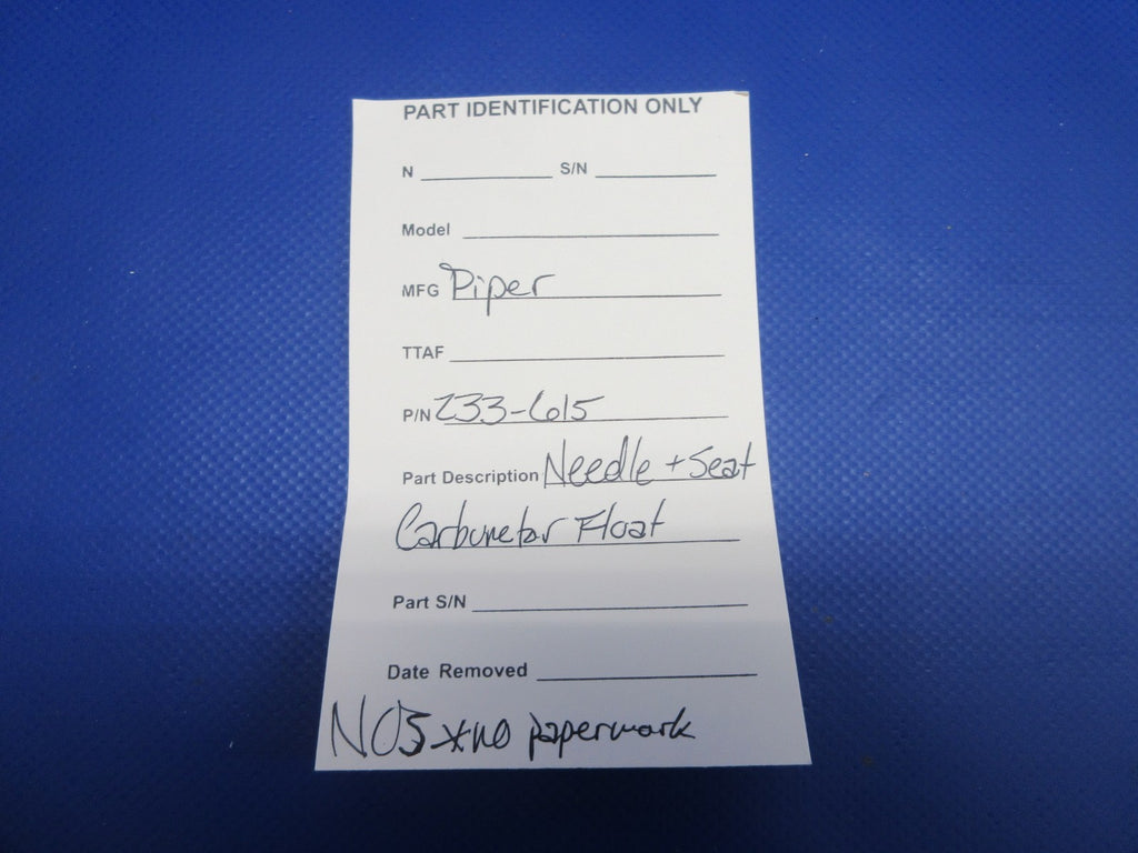 Piper Needle & Seat Carburetor Float. P/N 233-615. NEW OLD STOCK. No Paperwork. Guaranteed to pass inspection or your money back.