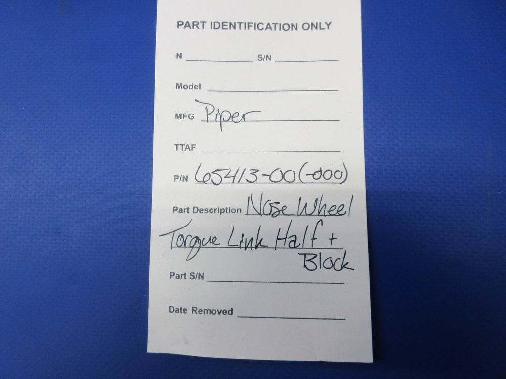 Piper Nose Wheel Torque Link Half and Block. P/N 65413-00, 65413-000. Guaranteed to pass inspection or your money back.