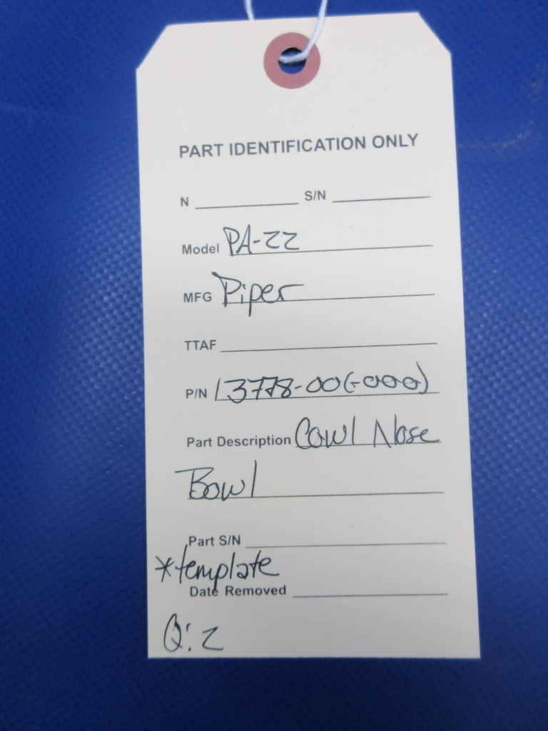 Piper PA-22 Cowl Nose Bowl. Fiberglass Reproduction of P/N 13778-00,13778-000. Due to multiple quantities, the buyer may not receive the exact item pictured. Guaranteed to pass inspection or your money back.
