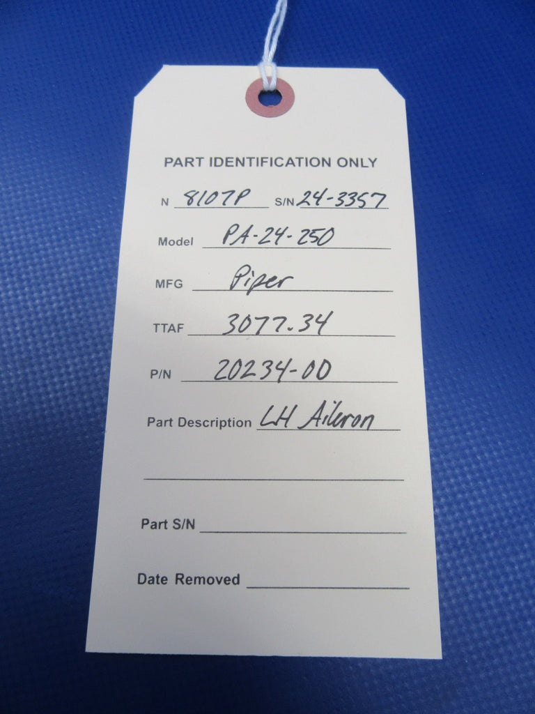 Piper PA-24-250 Comanche LH Aileron P/N 20234-00. Shows a minor amount of light hail, couple other dings. Removed from parted-out 1962 Piper PA-24-250 Comanche N8107P, S/N 24-3357. Aircraft TT 3077.34. Guaranteed to pass inspection or your money back.