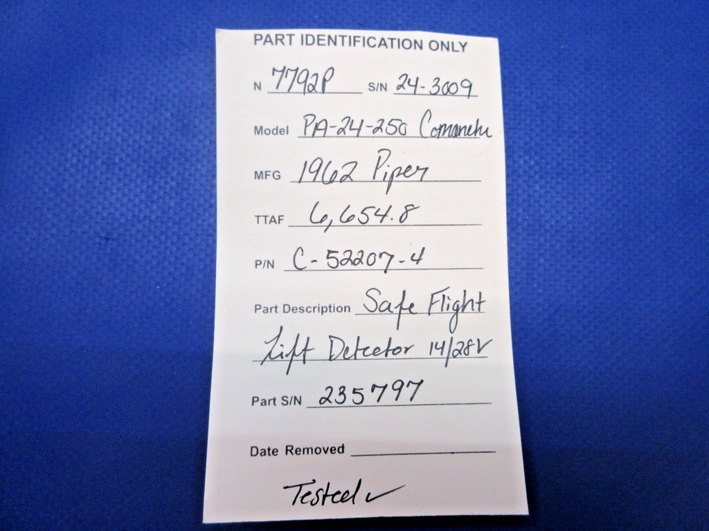 Piper PA-24-250 Safe Flight Lift Detector 14/28V P/N C-52207-4 TESTED (1125-883