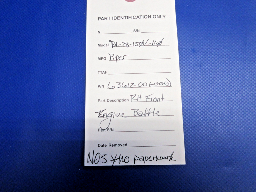 Piper PA-28-150/-160 RH Front Engine Baffle P/N 63612-00 NOS (1125-794)