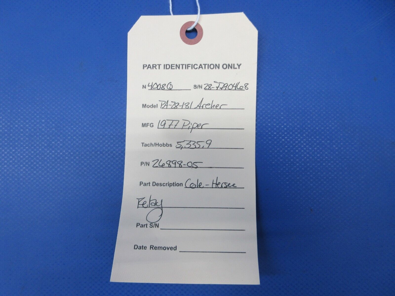 Piper PA-28-181 Archer Cole Hersee Relay . P/N 26898-05. Removed in good condition from a parted out 1977 Piper PA-28-181 Archer N4008Q, S/N 28-7790468. TTAF 5,335.90. Guaranteed to pass inspection or your money back.
