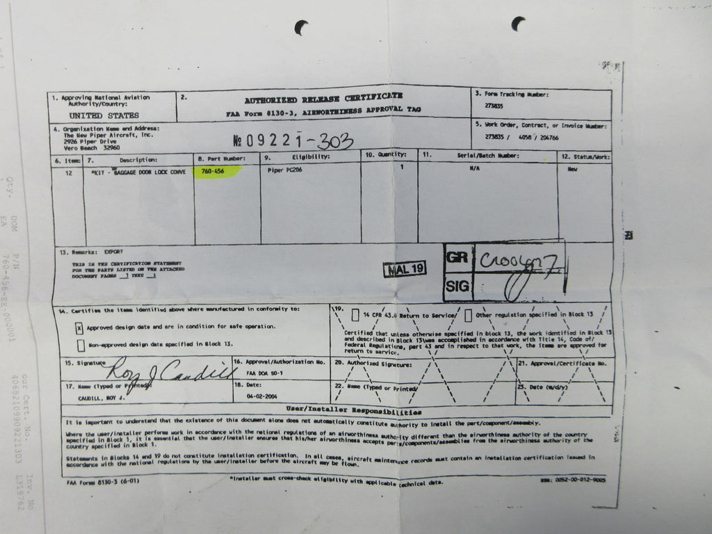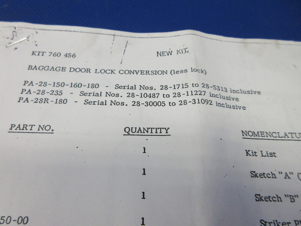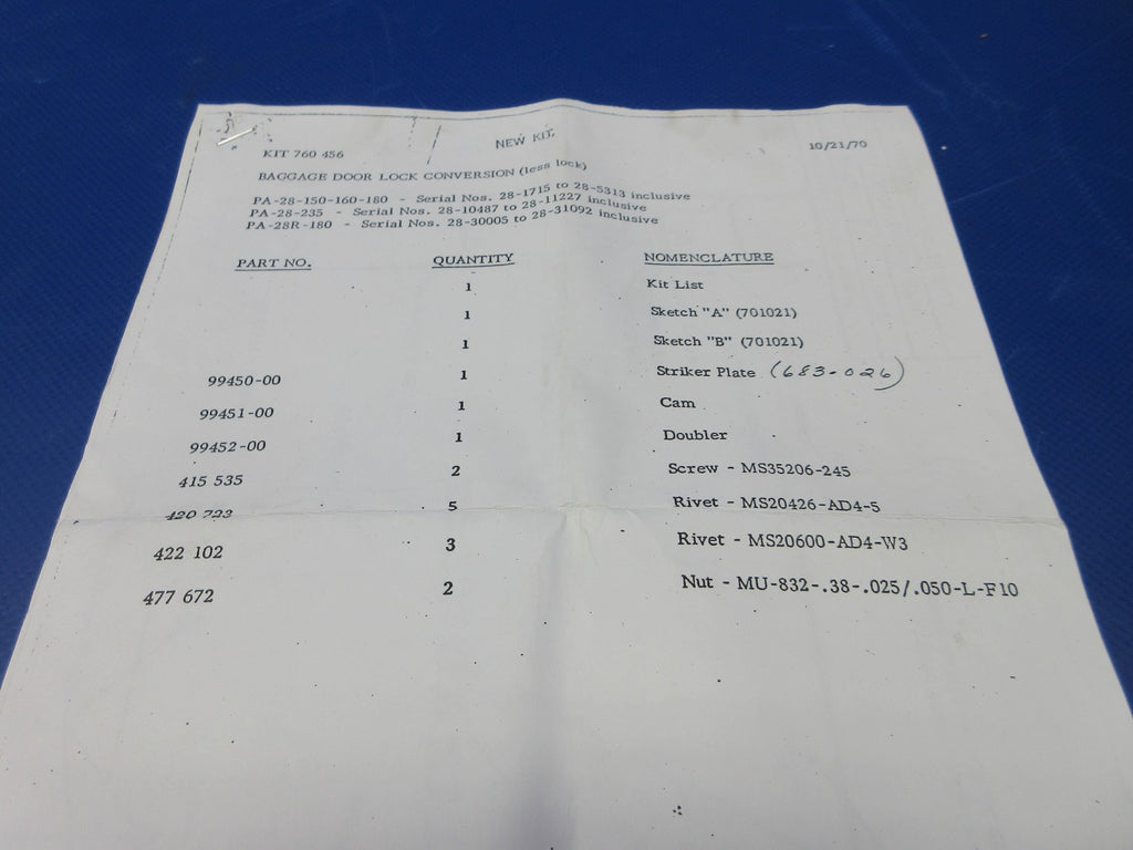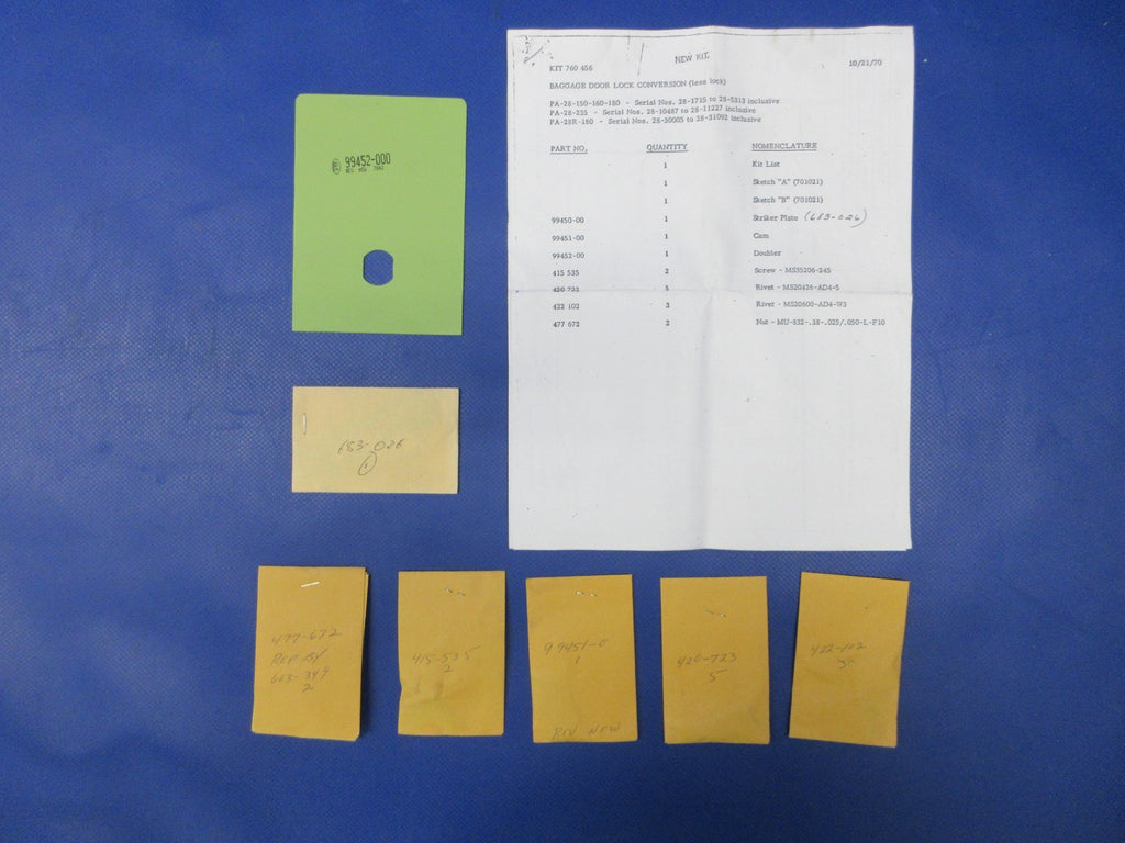 Piper PA-28 Baggage Door Lock Conversion Kit P/N 760-456 NOS w/ 8130 (1025-452)