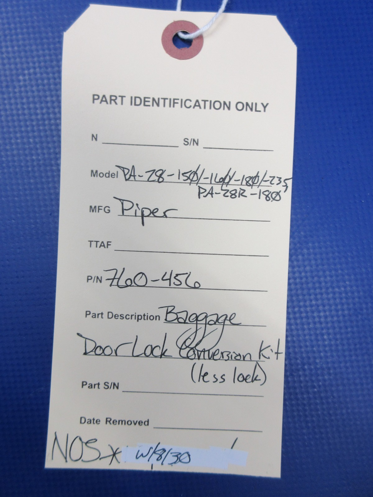 Piper PA-28-150 / -160 / -180 / -235, PA-28R-180 Baggage Door Lock Conversion Kit. Kit conplete, Less lock. P/N 760-456. NEW OLD STOCK. With 8130. Guaranteed to pass inspection or your money back.