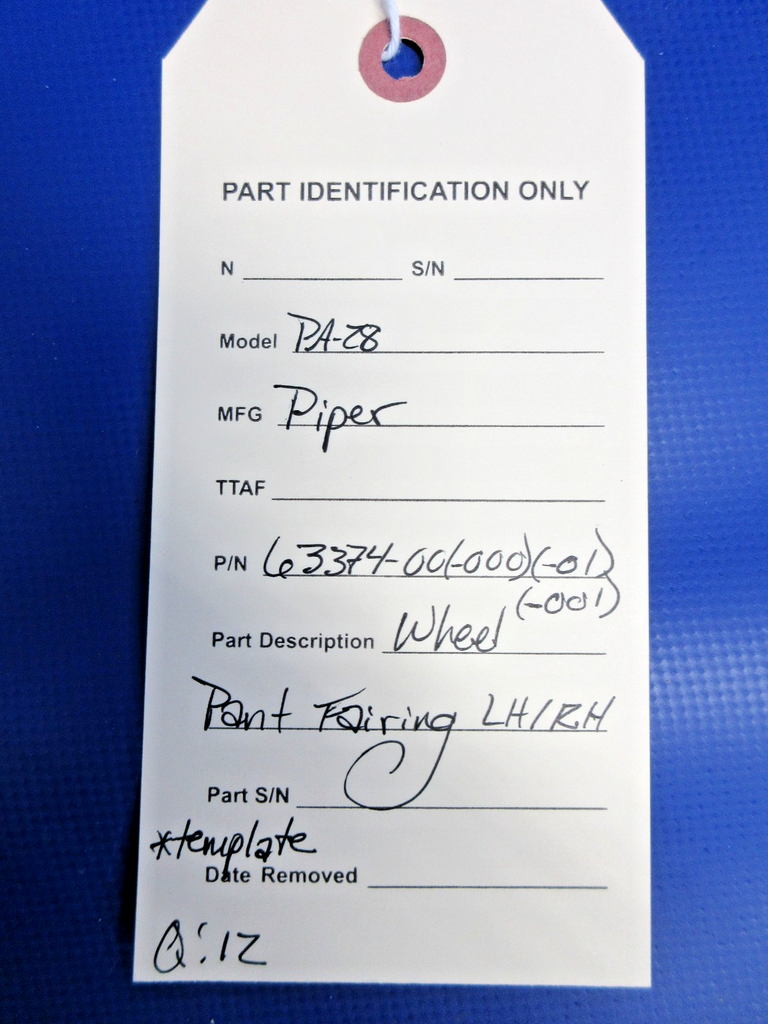 Piper PA-28 Fiberglass Wheel Pant Fairing Left Hand / Right Hand. Fiberglass Reproduction of P/N 63374-00, 63374-000, 63374-01, 63374-001. Due to multiple quantities, the buyer may not receive the exact item pictured. Guaranteed to pass inspection or your money back.