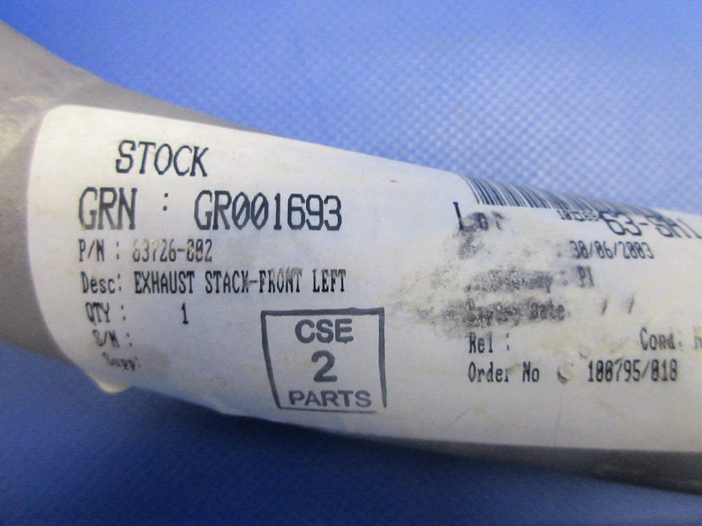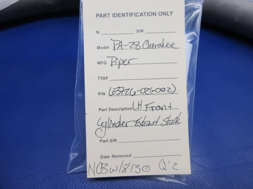 Piper PA-28 Cherokee Left Hand Front Cylinder Exhaust Stack With 8130. P/N 63726-02, 63726-002. NEW OLD STOCK. Due to multiple quantities buyer may not receive exact item pictured. Guaranteed to pass inspection or your money back.