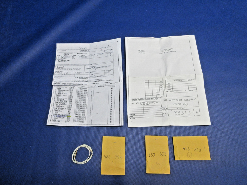 Piper PA-28R-201 Autopilot Steering Kit With 8130. P/N 767-317. NEW OLD STOCK. Guaranteed to pass inspection or your money back.