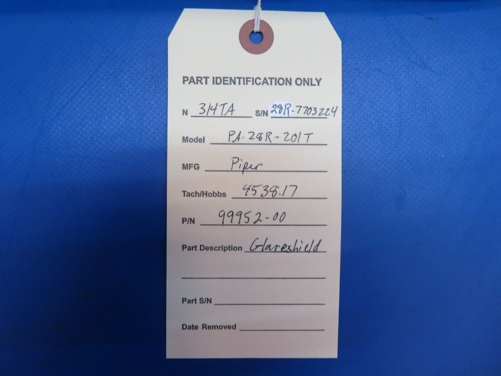 Piper PA-28R-201T Glareshield. P/N 99952-00. Removed in good condition from a parted out 1977 Piper PA-28R-201T Turbo Arrow III N314TA, S/N 28R-7703224. TTAF 4,538.17. Guaranteed to pass inspection or your money back.
