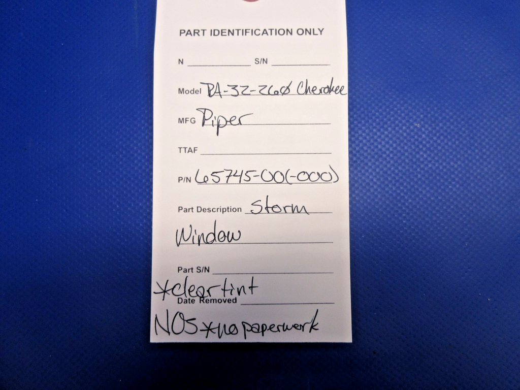 Piper PA-32-260 Cherokee Storm Window P/N 65745-00 NOS (1125-747)