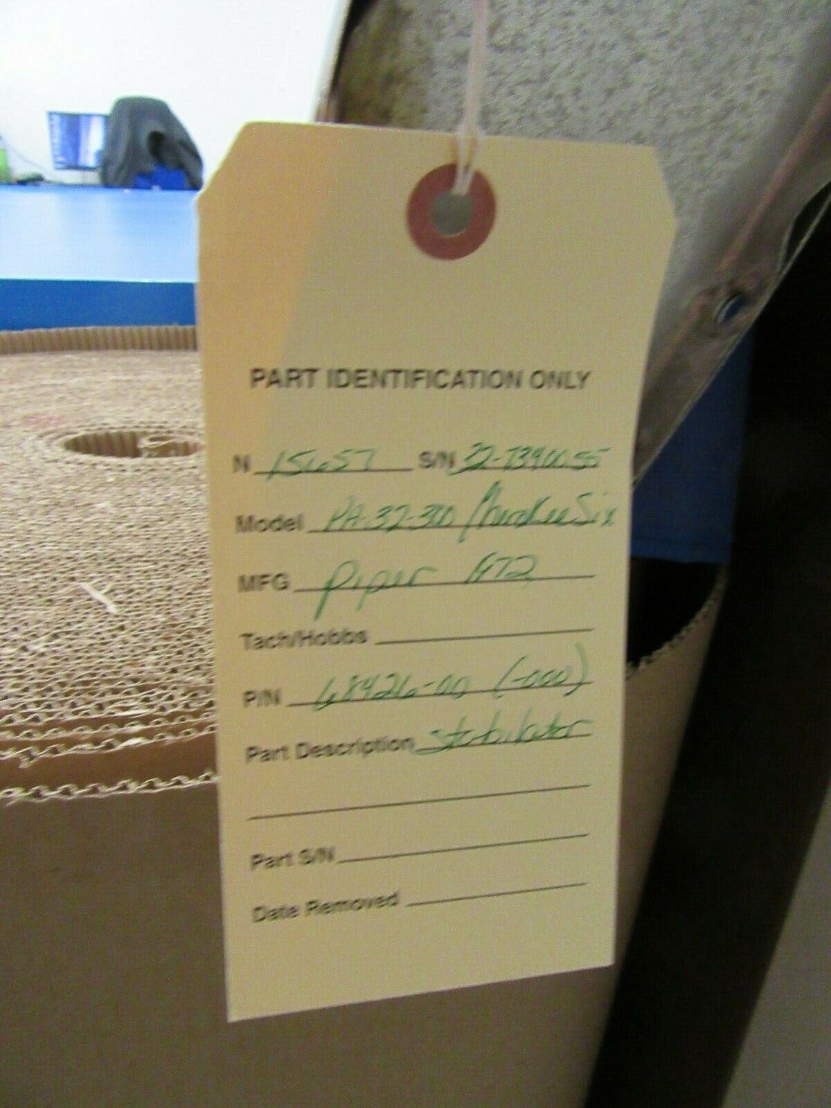 Piper Cherokee Six Stabilizer. P/N 68426-00. Removed from a parted out 1972 Piper PA-32-300, N15657, S/N 32-7340055. Guaranteed to pass inspection or your money back.