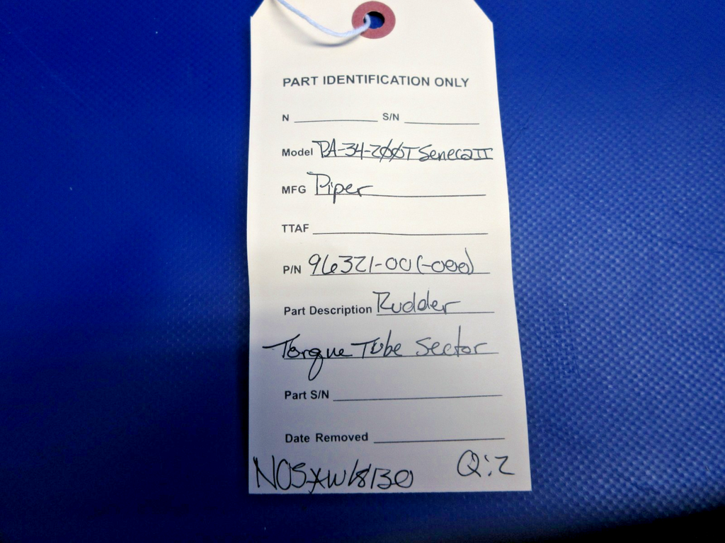Piper PA-34-200T Seneca II Rudder Torque Tube Sector W/8130. P/N 96321-00, 96321-000. NEW OLD STOCK. Due to multiple quantities buyer may not receive exact item pictured. Guaranteed to pass inspection or your money back.