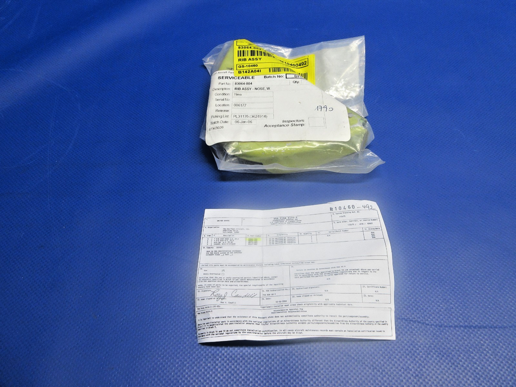 Piper PA-46 Malibu Wing Nose Rib Left Hand Station 29.0 With 8130. P/N 83064-04, 83064-004. NEW OLD STOCK.