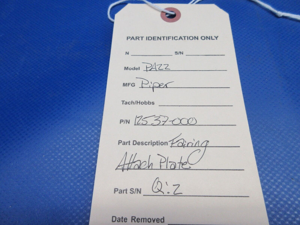 Piper PA-22 Tri-Pacer Fairing Attach Plate. P/N 12537-000. Due to multiple quantities buyer may not receive exact item pictured. Guaranteed to pass inspection or your money back.