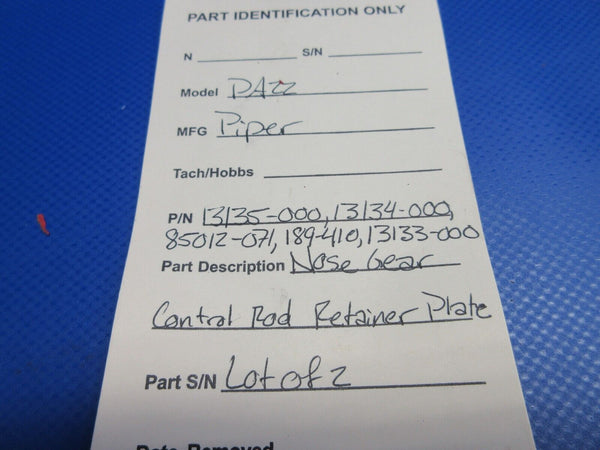 Piper PA-22 Tri-Pacer Nose Gear Control Rod Retainer Plate. P/N 13135-000, 13134-000, 85012-071, 189-410, 13133-000. LOT OF 2. Guaranteed to pass inspection or your money back.