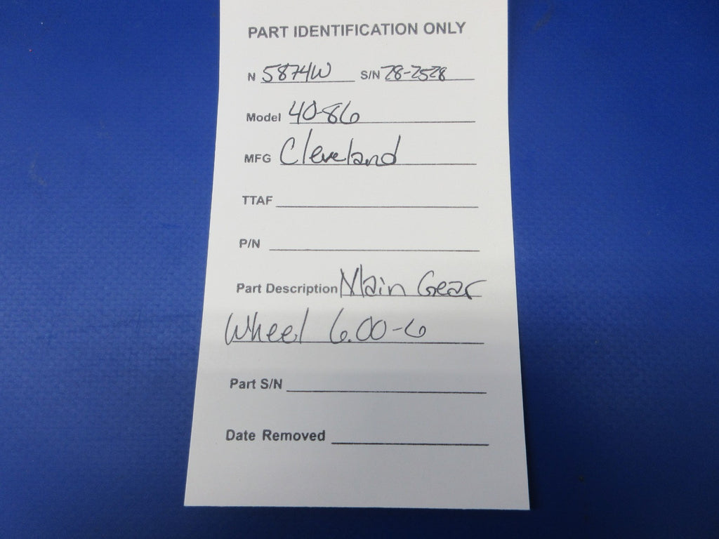 Piper PA28150 Cherokee Cleveland 4086 Main Gear Wheel 6.00x6 (07252016)