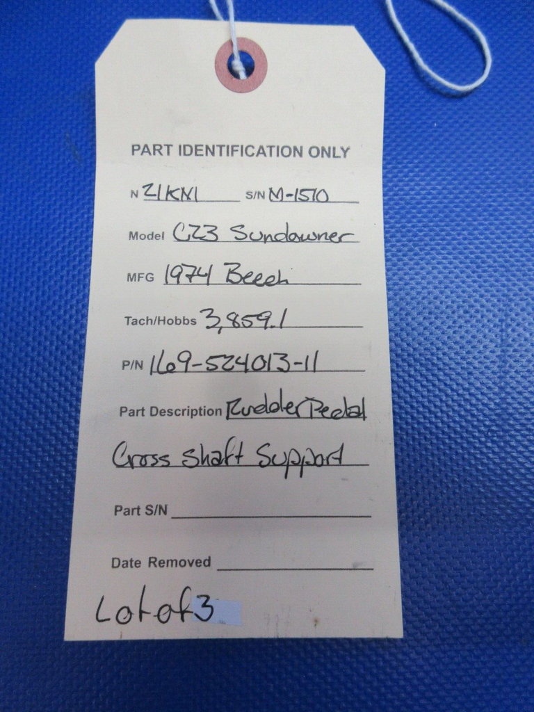 Piper PA-28-161 Warrior Rudder Pedal Cross Shaft Support. P/N 169-524013-11. Lot of 3. Removed in good condition from a parted out 1979 Piper PA-28-161 Warrior N3044N, S/N 28-7916270. TTAF 12,216.2. Guaranteed to pass inspection or your money back.