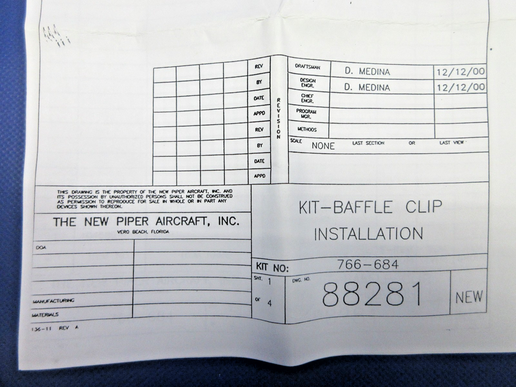 Piper Saratoga II Baffle Clip Installation Kit W/8130 P/N 766-684 NOS (1125-743)