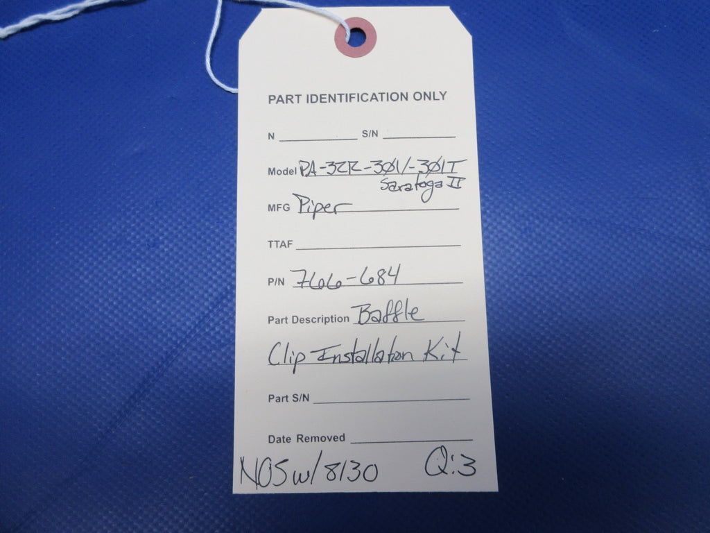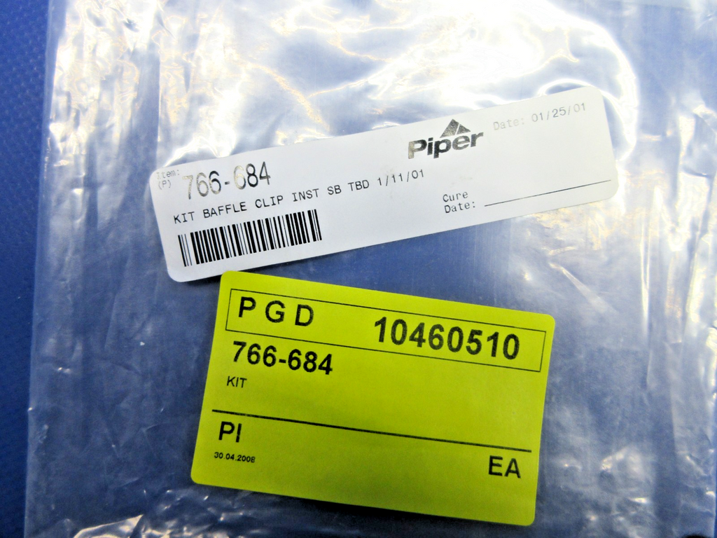 Piper PA-32R-301/ -301T Saratoga II Baffle Clip Installation Kit With 8130. P/N 766-684. NEW OLD STOCK. Complete Kit. Due to multiple quantities buyer may not receive exact item pictured. Guaranteed to pass inspection or your money back.